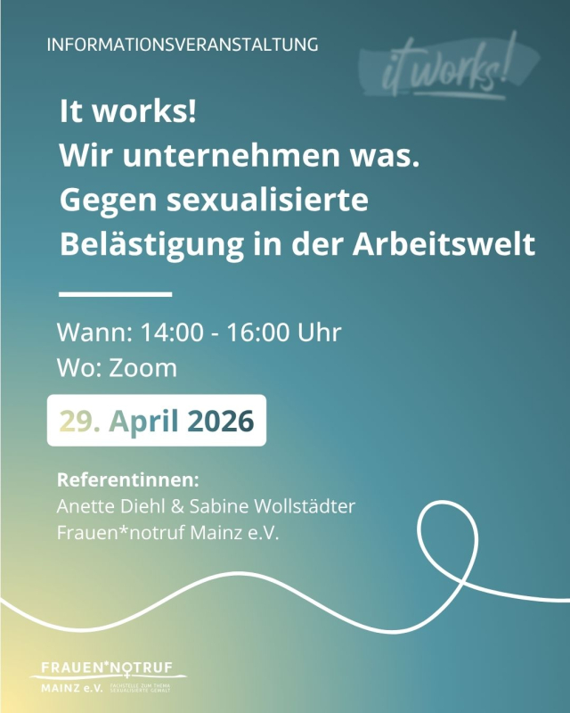 Informationsveranstaltung: It works! Wir unternehmen was. Gegen sexualisierte Belästigung in der Arbeitswelt